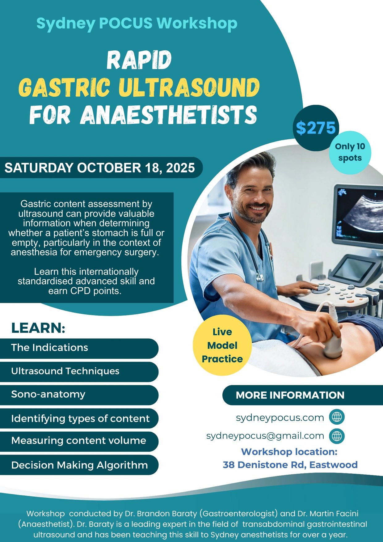 Upcoming Gastric Content Workshop 9am-12pm in Sydney October 18, 2025!